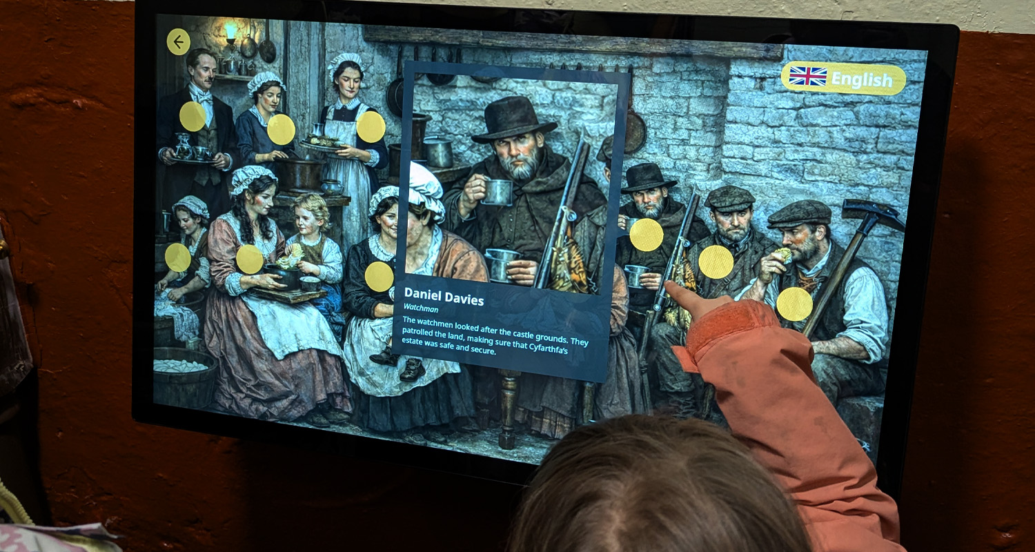 Across Cyfarthfa Castle you will find an assortment of hardware, software and video content suppplied by blackbox-av, each one dedicated to a portion of Cyfarthfa’s history, including mining and industrialisation in the area, as well as focusing on the history of the castle itself, such as the reason for its construction, who lived there and the army of servants who accompanied them.