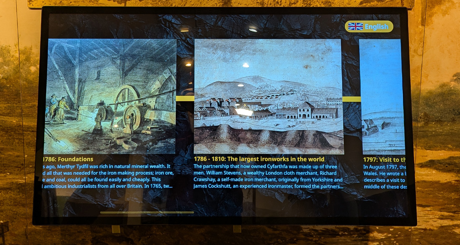 Various touchscreens using our off-the-shelf museum software Liightbox 3 offer a fascinating insight to the history of the area and those who once called it home. This includes one 32″ touchscreen that shares a timeline of the Ironworks.