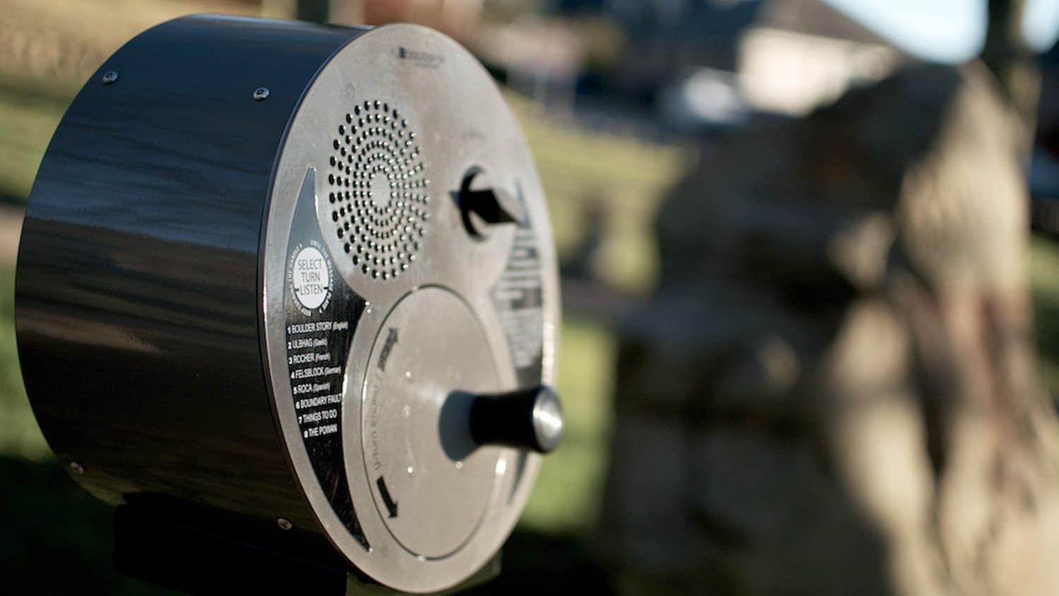 The self-powered audio point allows visitors to select a topic of interest, turn the handle and listen to the relevant narration.